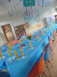 Das Kinderhotel Am Wasserturm bietet für 20 Kinder die Möglichkeit, eine Nacht im Hortgebäude zu verbringen. Im Schuljahr gibt es abgestimmt zu den Inspirationsthemen ein bis zwei Kinderhotels.