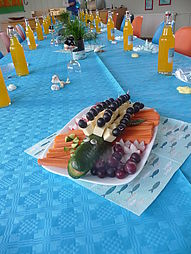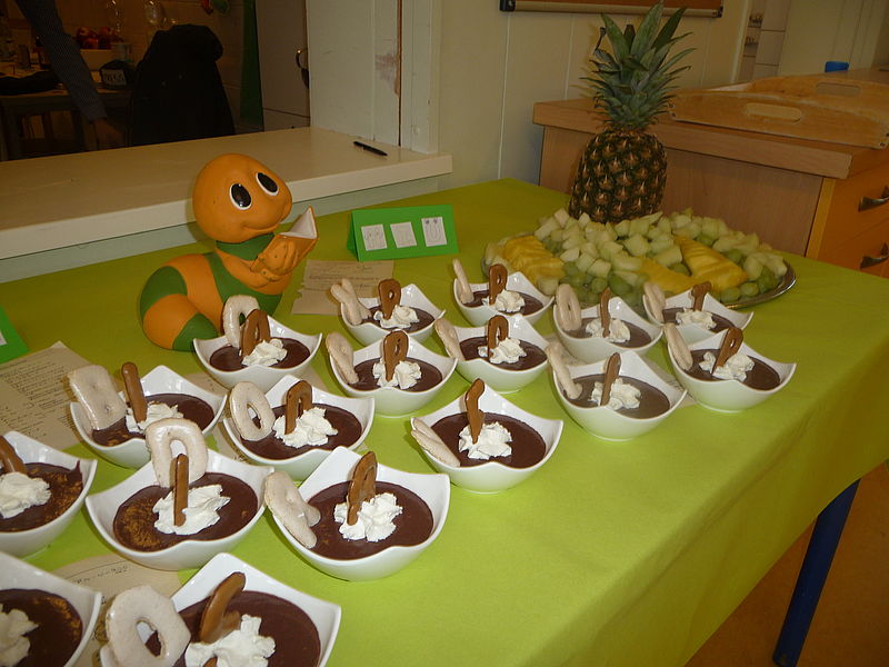Für die hungrigen Besucher gab es zu Beginn eine leckere Zucchinisuppe, die bei allen den Appetit anregte. Anschließend wurde Rührei mit Kartoffelpüree serviert und ein leckeres Pudding-Dessert mit Beeren angerichtet.