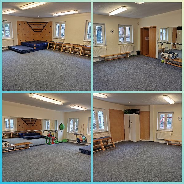 In unserem Sportraum haben die Kinder Freude an Bewegung, Spiel und Tanz. Hier finden unsere Kurse „Wellness & Entspannung“ und „Fit von Kopf bis Fuß“ statt.