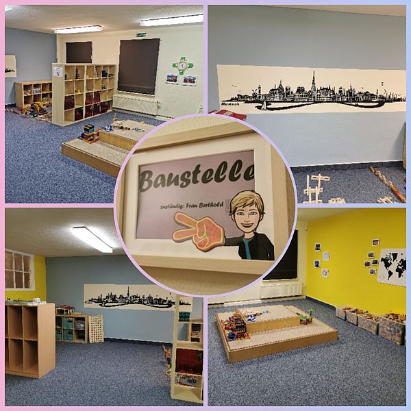 In unseren Funktionsräumen mit themenbezogener Gestaltung werden die Kinder angeregt, sich beim Bauen, bei der Bildbetrachtung von Büchern und Schrift, beim Lesen, beim Musizieren, bei Rollenspielen und vieles mehr auszuprobieren und zu entfalten.