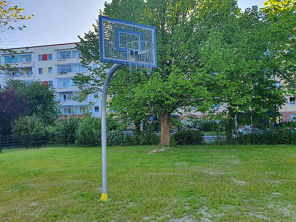 Ein fest verbauter Basketballkorb bietet hier die Gelegenheit für einige Freiwürfe.