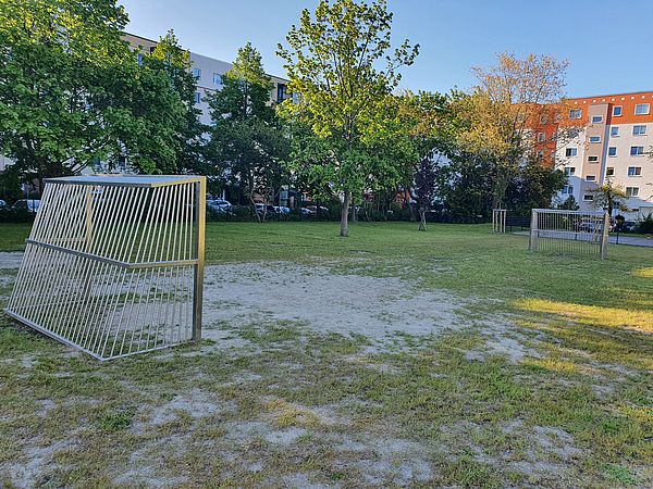 Mit 2 großen Toren und einer Großzügigen Freifläche haben die Kinder hier ausreichend Platz zum Fußball spielen.