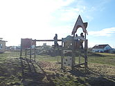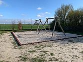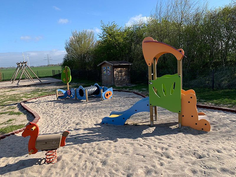 Die Kita verfügt über ein großzügig gestaltetes Außengelände. Auf diesem befinden sich Klettermöglichkeiten für Krippen- und Kindergartenkinder, wie Schaukeln, Rutschen und Sandkisten, einem Bolzplatz und vielen freien Flächen für kreative Spiele.