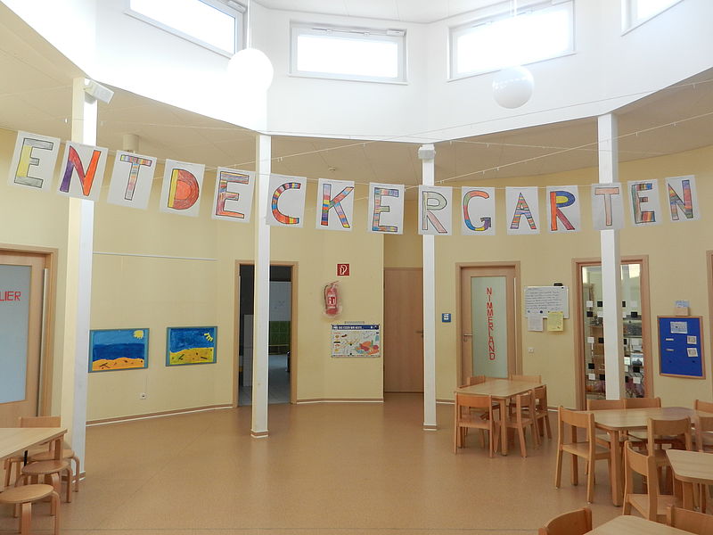 Die Lage der Kita ermöglicht es uns, kleine Spaziergänge und Exkursionen in die nähere Umgebung zu unternehmen. Waldausflüge und Stadterkundungen sind mit Bus und Bahn möglich.
