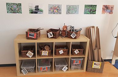 Für die Kindergartenkinder stehen fünf Räume für eine gruppenübergreifende Arbeit zur Verfügung. So haben die Kinder die Möglichkeit, sich ihren Themen in den folgenden Funktionsräumen zu widmen: