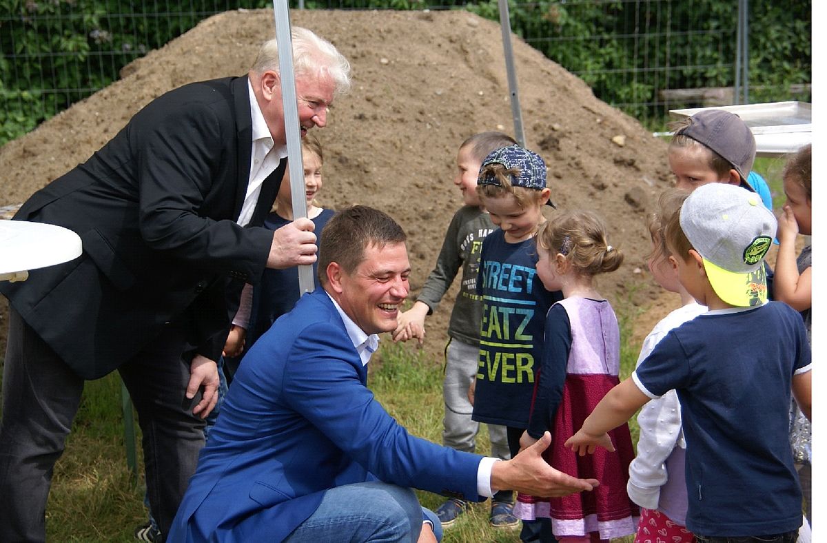 Am 21.05.2019 begrüßte Landrat Sebastian Constien persönlich die Kinder der Kita „Kleiner Maulwurf“ in Groß Wokern auf der Baustelle, wo das neue Haus entstehen soll.