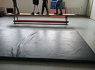 In unserem Sportraum können wir laufen, klettern, rollen, steigen, durchkriechen, ziehen, schieben und weitere sportlich-motorische Fertigkeiten entwickeln und festigen. Aktivitäten in diesem Raum machen vielen Kindern besonders Spaß.