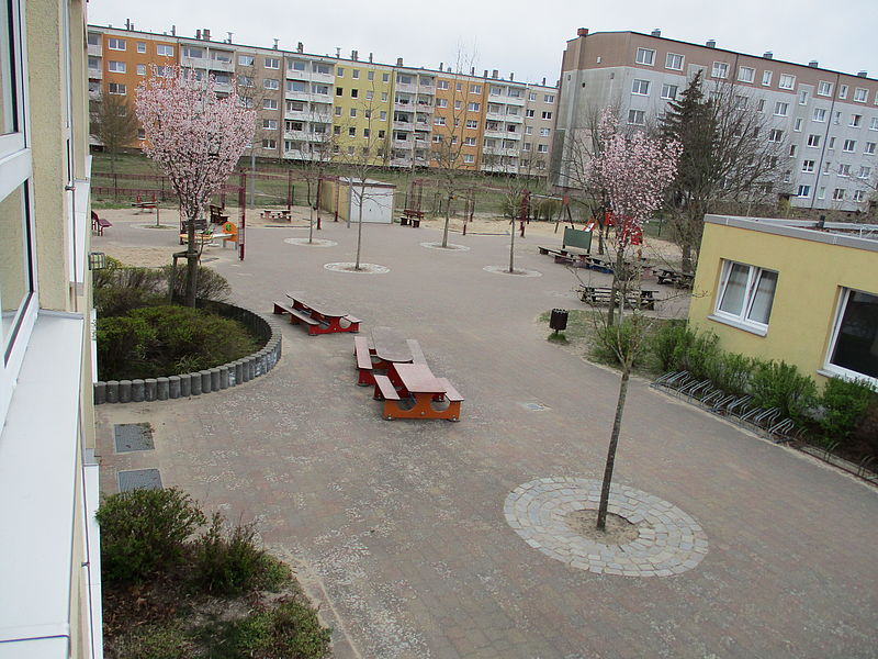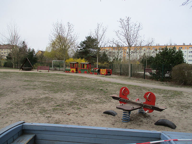 Das Außengelände ist sehr großzügig und vielfältig. Den Kindern steht ein umzäuntes Gelände mit großer gepflasterter "Fahrstrecke", Wiese zum Fußballspielen, kleinem Berg zum Rutschen und Rodeln sowie verschiedensten Spielgeräten zur Verfügung. Unser Spielplatz bietet Raum und Möglichkeiten für viele verschiedene Aktivitiäten, lädt aber auch zum Verweilen ein. Weiterhin können die Kinder aus unterschiedlichsten Fahrzeugen und Outdoorspielzeugen wählen, um somit ihre Umgebung zu erkunden und zu erforschen.