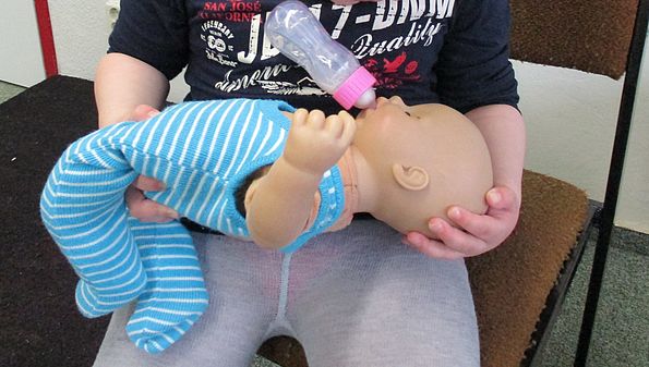 ...der Puppenvati kümmert sich liebevoll um sein Puppenbaby...