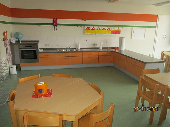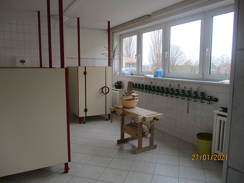 Einmal in der Woche ab Januar werden unsere "Großen" am Vormittag von einer Horterzieherin vom Kindergarten abgeholt und in den Horträumen betreut. Diese Räume sind direkt im Gebäude der Haff – Grundschule untergebracht. Somit lernen die Kinder schon im Vorfeld ihre neue zukünftige Umgebung kennen und der Übergang zur Schule/Hort fällt nicht mehr allzu schwer. Die Werkstatt im Hortgebäude bietet viele Möglichkeiten, um die geplanten Projekte der Vorschulgruppe kreativ zu unterstützen. Die Kinder sehen die Schulkinder in den Pausen auf dem Schulhof und treten so mit ihnen in den ersten Kontakt. Ebenso neu im Hort und in der Schule ist die Trennung auf den Toiletten von Mädchen und Jungen, dass gibt es im Kindergarten so nicht.