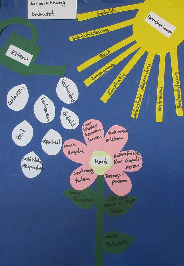 Sie dient nicht nur den Kindern, die sich an die Trennung von Eltern, an eine neue Umgebung und Personen gewöhnen müssen, sondern auch den Eltern, die ihr Kind in fremde Hände geben. Ziel der Eingewöhnungsphase ist es, dass das Kind eine Beziehung zur Erzieherin aufbaut, sie als Vertrauensperson anerkennt und sich von ihr trösten lässt. Denn Kinder brauchen vor allem in diesem frühen Alter erwachsene Bezugspersonen, die für sie da sind. Nur so können sie ungestört die Welt entdecken. In der Eingewöhnungszeit lernt ihr Kind schrittweise die neue Umgebung, die Kinder und Erzieherinnen kennen. Zu Beginn begleiten Sie oder eine Begleitperson Ihr Kind. In den erst kurzen Trennungsphasen zeigt sich, ob sich Ihr Kind von der Erzieherin trösten lässt, wenn es Kummer hat. So wird nach und nach Vertrauen aufgebaut. Die Eingewöhnung ist beendet, wenn die Erzieherin von Ihrem Kind als sichere Basis akzeptiert wird.