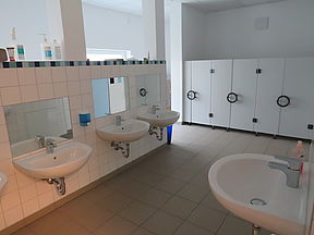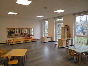 Unser Kindergarten-Bereich ist in verschiedene "Themenräume" unterteilt. Wir bieten den Kindern die Möglichkeit sich im Musik-, Theater- oder Bauraum sowie im Atelier zu entfalten. In diesen Räumlichkeiten finden sich die Kinder auch zu Morgenkreisen zusammen oder mittags je nach ihren Schlafbedürfnissen. Es gibt aktuell zwei Schlafgruppen und eine Wachgruppe. Ein gemeinsammes großes Bad können alle 4 Kita-Gruppen (Polarlichter, Seeigelbrigade ,Krabbenkompanie und Seesterne) zusammen nutzen. Unsere Räume tragen nordische Gruppennamen.