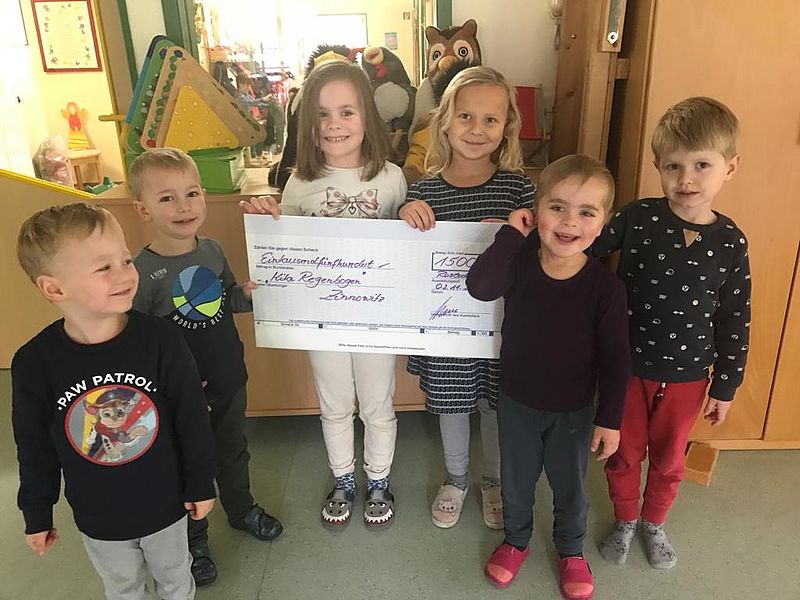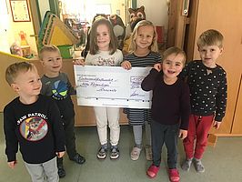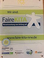 Auf Grund zahlreicher umweltverbundener und fairer Projekte wurde uns für drei Jahre das Siegel „Faire Kita – Verantwortung von Anfang an!“ vom Netzwerk „Faire Metropole Ruhr“ verliehen, dem folgte eine Empfehlung für die Vergabe des ökumenischen Förderpreises und im Zuge dessen halten die Kita-Kinder nun einen Geld-Scheck in Höhe von 1.500 Euro für den 2.Platz in den Händen.