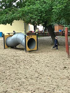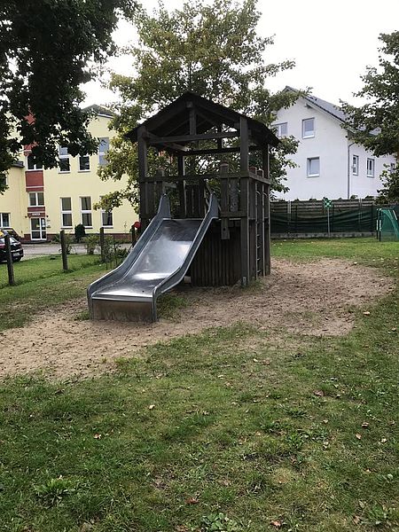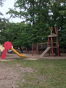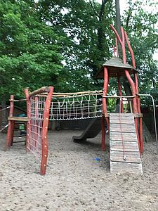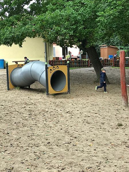 Der Spielplatz ist in den ursprünglich belassenen Außenbereich integriert. Die vielen Sträucher und Bäume sind Luftfilter sowie Lebensraum und Unterschlupf für viele Tiere. Bei der Gestaltung des Spielplatzes wurde bewusst darauf geachtet, dass den Kindern ausreichend Freiraum zum Spielen bleibt und viel natürlicher Baustoff bei der Gestaltung einbezogen wird.