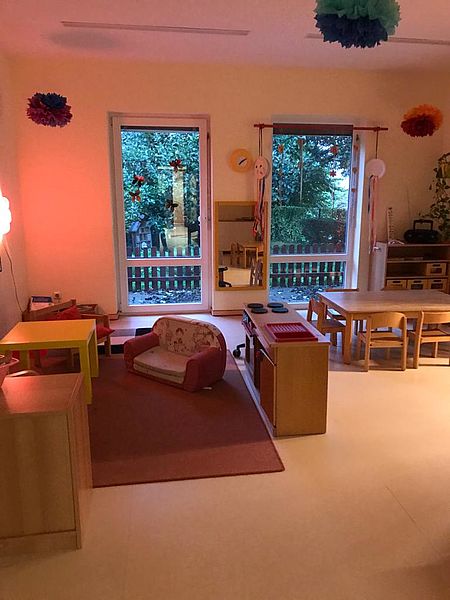 Die lichtdurchfluteten Räume mit ihren großen Fenstern sorgen für eine freundliche, warme Atmosphäre im gesamten Krippenhaus und stellen eine Wohlfühloase für die Kinder da.