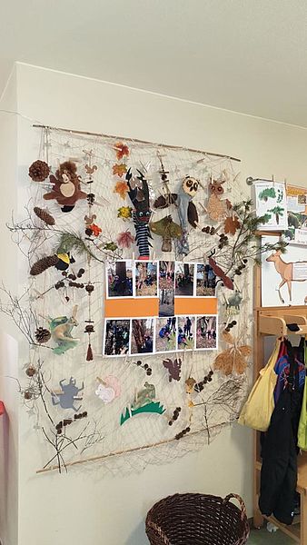 Eine sprechende Wand dokumentiert die Erlebnisse rund ums Jahr. So freuen wir uns im Frühling auf die Rückkehr der Farben und Gerüche, und erobern die Sommerzeit barfuß. Im Herbst genießen wir die Erntezeit und lernen Geschichten über heimische Bäume kennen. Der Winter lässt uns als Polarforscher und Spurensucher unterwegs sein und wir erleben in der warmen Kita Basteleien aus dem „grünen Baumarkt“, klassische Musik und selbstgebackene Plätzchen.
