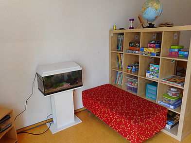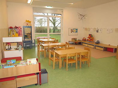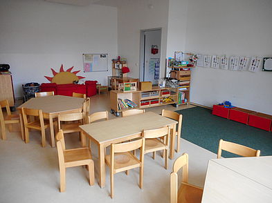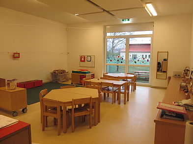 Projekte und Angebote, ausgehend von den Themen der Kinder oder angeregt durch die Erzieherin laden zum Ausprobieren ein, ermutigen Lösungen zu finden und fördern die Stärken und die Entwicklung der Kinder.Ein kleiner Nebenraum bietet den Kindern die Möglichkeit sich zurückzuziehen, Bücher anzusehen oder in kleinen Gruppen zu spielen.