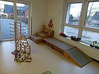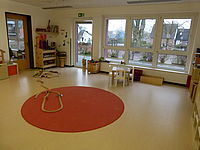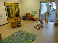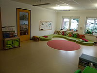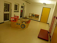 Unser Foyer nutzen wir für Sport- und Bewegungsangebote, sowie für die Betreuung der Früh- und Spätdienstkinder