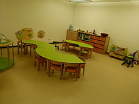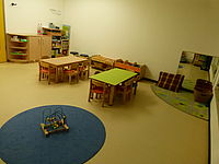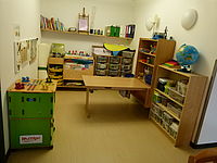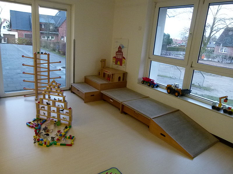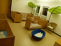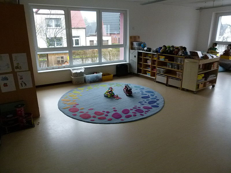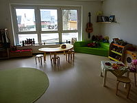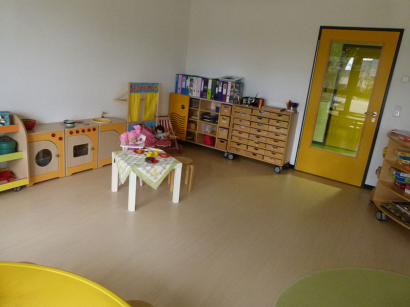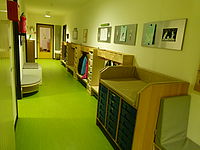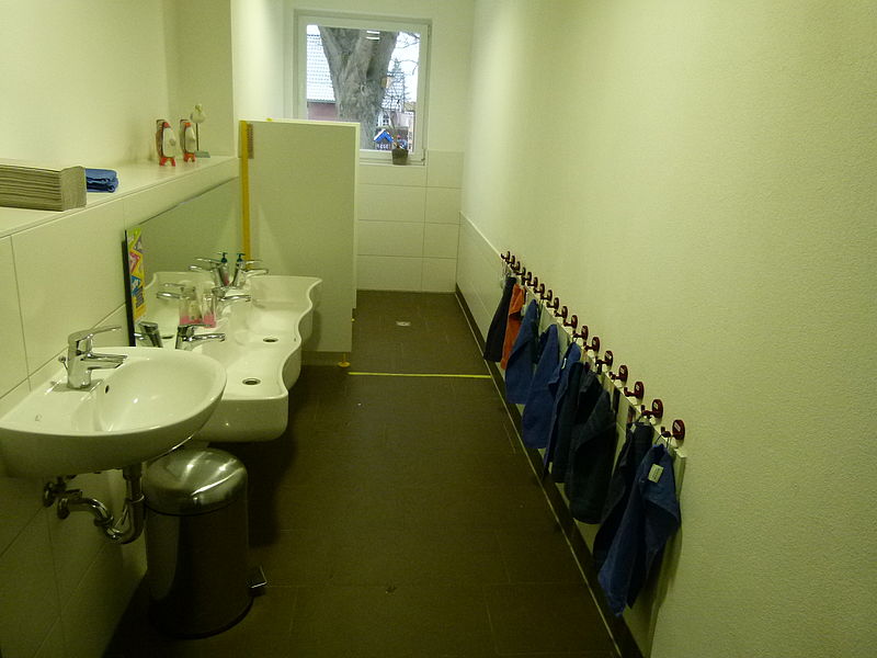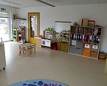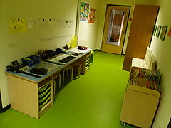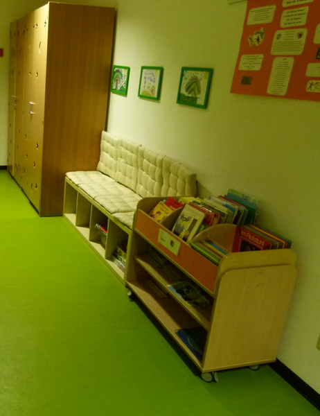 Neben den Kinder-Garderoben befinden sich auf unseren langen Fluren auch das Kitabüro und die Leseecke