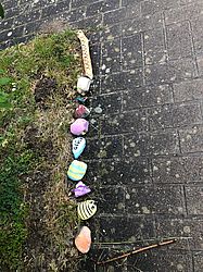 viele von euch wohnen ja in der Nähe des Kindergartens und auch wenn wir nicht alle zusammen sein können, hatten wir eine tolle Idee. Wenn ihr Lust habt, dann sammelt bei einem Spaziergang mit euren Eltern doch einen Stein und bemalt diesen nach Lust und Laune. Ein Kind unserer Einrichtung hat dies bereits getan (siehe Bild). Die Idee dahinter ist, dass ihr diese Steine ab dem 04.05.2020 als lange, bunte Schlange vor unsere Eingangstür legen könnt. Diese Schlange soll uns daran erinnern, dass wir in dieser schweren Zeit trotzdem alle füreinander da sind. Und ihr müsst dafür nicht einmal direkt in den Kindergarten kommen. Toll, oder? Am Ende kommt natürlich ein Foto auf unsere Internetseite. Wir sind gespannt, wie lang die Schlange am Ende werden wird.