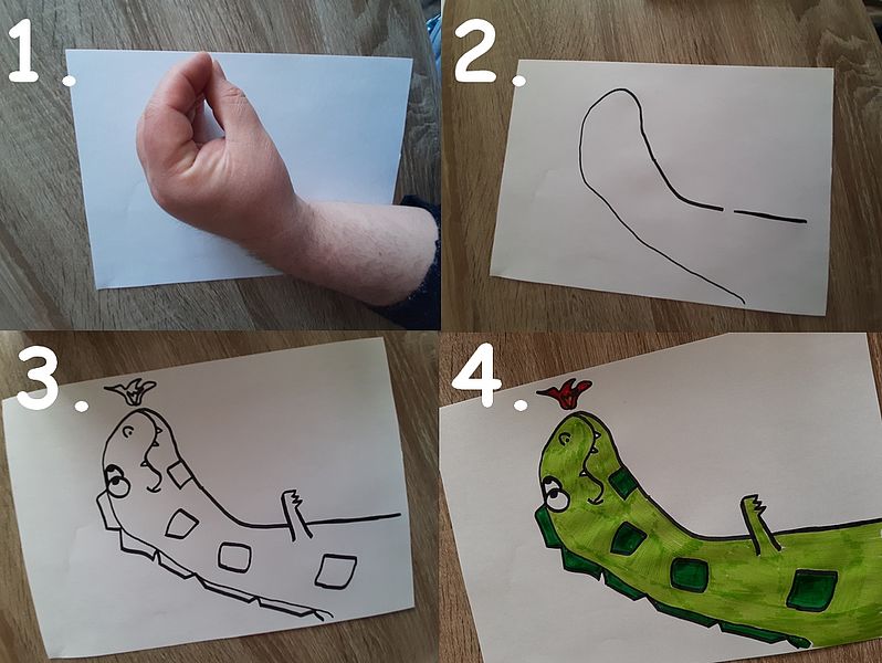 das Malen ist ein wunderbarer Zeitvertreib und wir wissen, dass ihr das sowieso schon richtig gut könnt. Aber wie wäre es denn mal, wenn ihr mal eure Hände als Malvorlage benutzt? Ihr wisst nicht wie? Ganz einfach. Ich braucht nur folgende Materialen: 1 Blatt Papier, Bunt- oder Filzstifte und eure Hand. Nun legt ihr eure Hand auf das Blatt Papier und zieht, mit einem Stift eurer Wahl, um die Hand eine Linie. Jetzt ist eure Kreativität gefragt. Ihr könnt ja mal wie auf den Bildern, die Gans oder den Drachen ausprobieren. Oder ihr malt etwas ganz anderes. Und wenn ihr eure Eltern lieb fragt, könnt ihr das Bild gerne an starkeostseegoern@web.de senden.