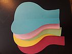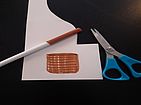 Falte die bunten Papiere! Lege die Schablone an die Faltkante an und umrande sie!