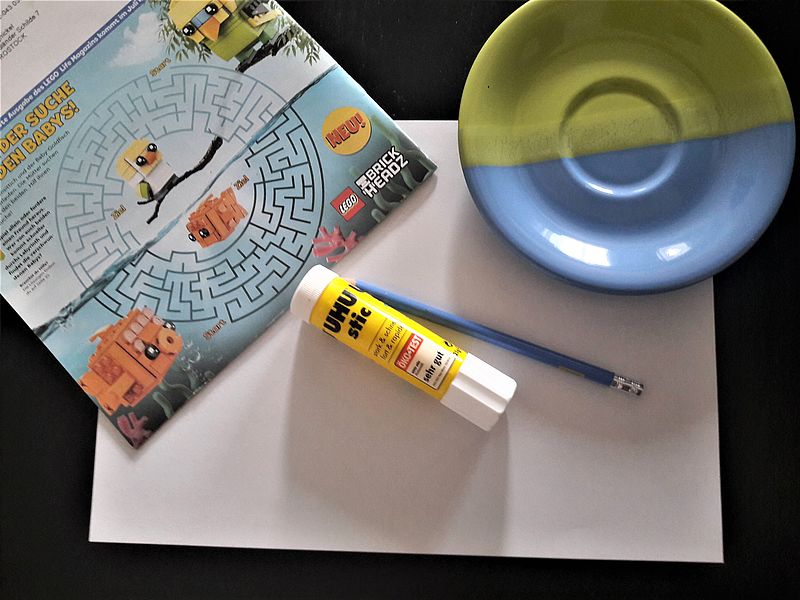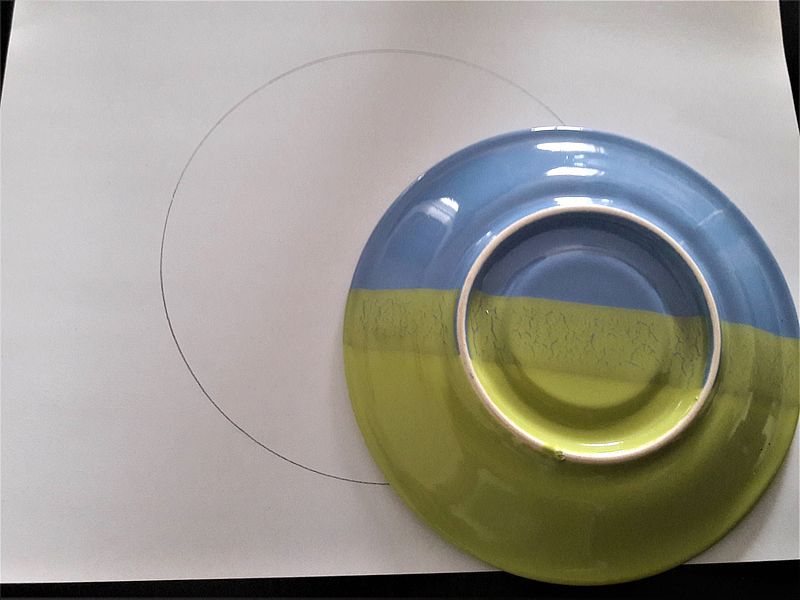 Lege den Teller auf dein Papier und umrande ihn mit dem Bleistift! Das ist die runde Erdkugel.