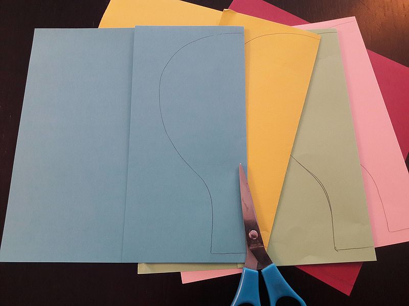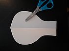 Falte das weiße Papier! Male einen halben Ballon auf und schneide ihn aus! Das ist deine Schablone.