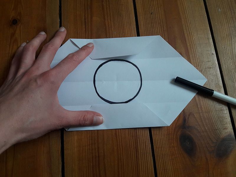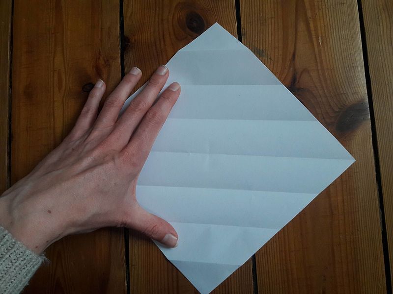Lege das Blatt vor dich und falte die obere Ecke auf die untere und wieder zurück! Eine Linie ist zu sehen.