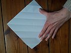 Falte die seitlichen Ecken in die Mitte! Du hast jetzt ein Viereck.