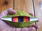 Drehe es um! Dein Auge ist jetzt fertig. Wenn du an den Seiten drückst, geht es auf und zu. Wenn du magst, kannst du die Augenlieder noch anmalen.