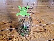 Lege das Material in ein altes, ausgewaschenes Glas! Das Zuhause des Frosches.