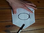 Male einen Kreis in die freie Fläche! Gestalte ein buntes Auge!