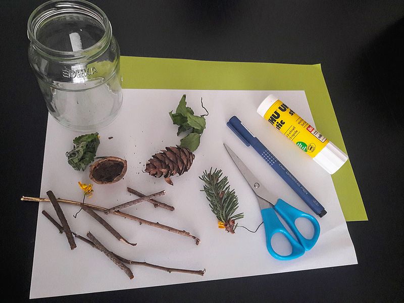 Wenn du das nächste mal raus gehst, sammle Naturmaterial und dünne Stöcke!