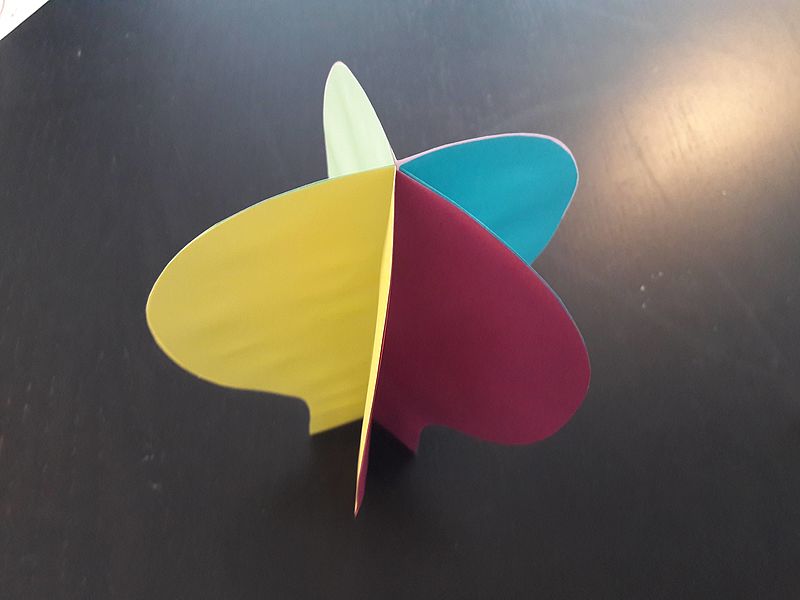 Jetzt müssten nur noch die Hälfte vom ersten und letzten Ballon lose sein. Klebe diese zusammen! Von oben sieht dein Ballon jetzt aus wie ein Stern.