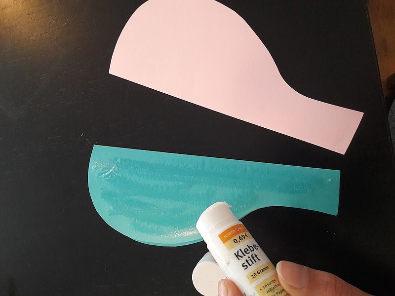Benutze nun den Kleber auf der einen Hälfte des ersten Ballons und klebe einen anderen Ballon genau darauf!