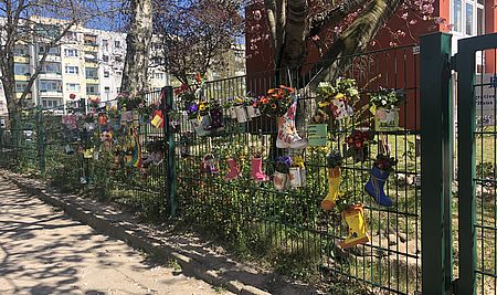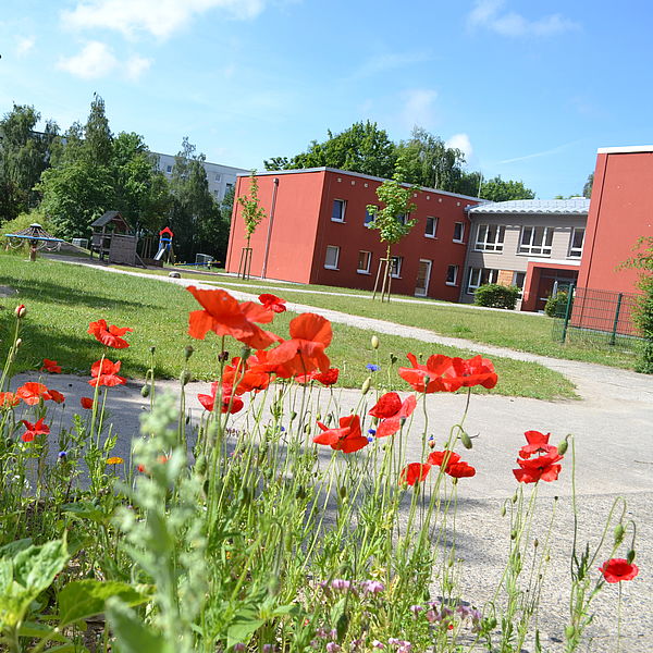 Sie finden uns in Rostock-Lichtenhagen in einem zweigeschossigen Gebäude mit einem großen Außengelände. In unserer Kita betreuen wir zur Zeit 201 Kinder in drei Krippengruppen und neun Kindergartengruppen.