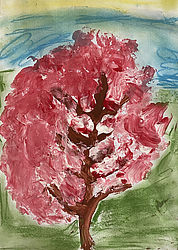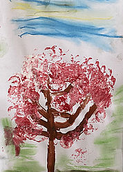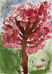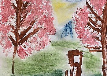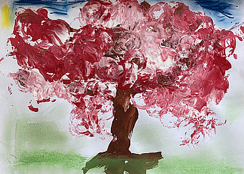 Der Winter ist passee, die Kinder malen eine Frühlingsallee