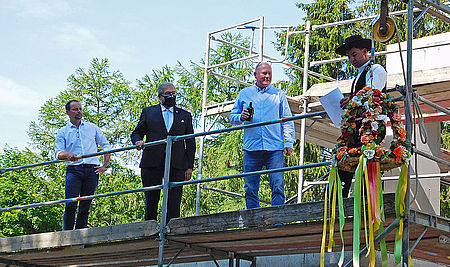 Künftig wird es hier Raum zum Spielen, Ausprobieren und Entdecken für 70 Krippen- und Kindergartenkinder geben. Im Zentrum des neuen Gebäudes liegt ein großzügiger Bewegungsraum, der vom Obergeschoss einzusehen ist. Ein Highlight stellt mit Sicherheit ebenfalls die große, begrünte Dachterrasse dar.