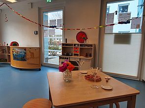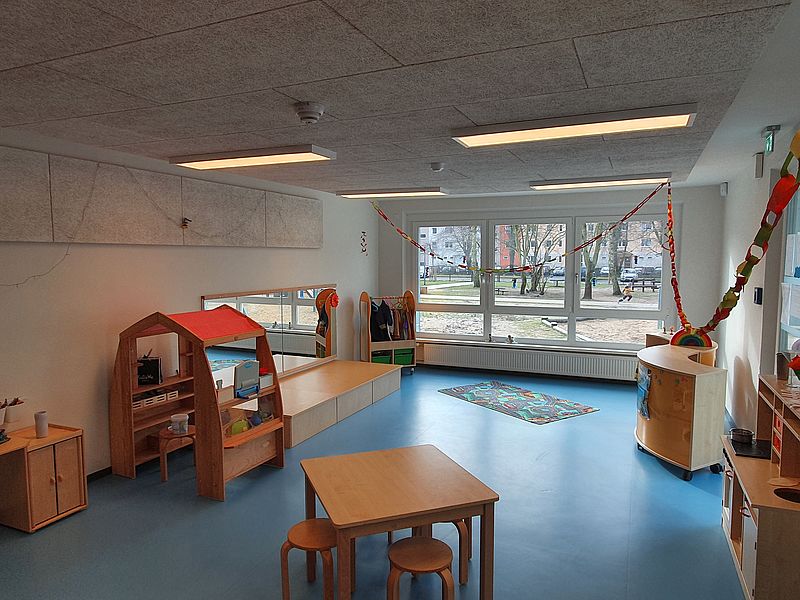 Jede Gruppe wird von einer erfahrenen Erzieherin begleitet und verfügt über einen großzügigen Gruppenraum, der gleichzeitig als Funktionsraum gestaltet ist.