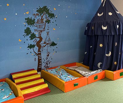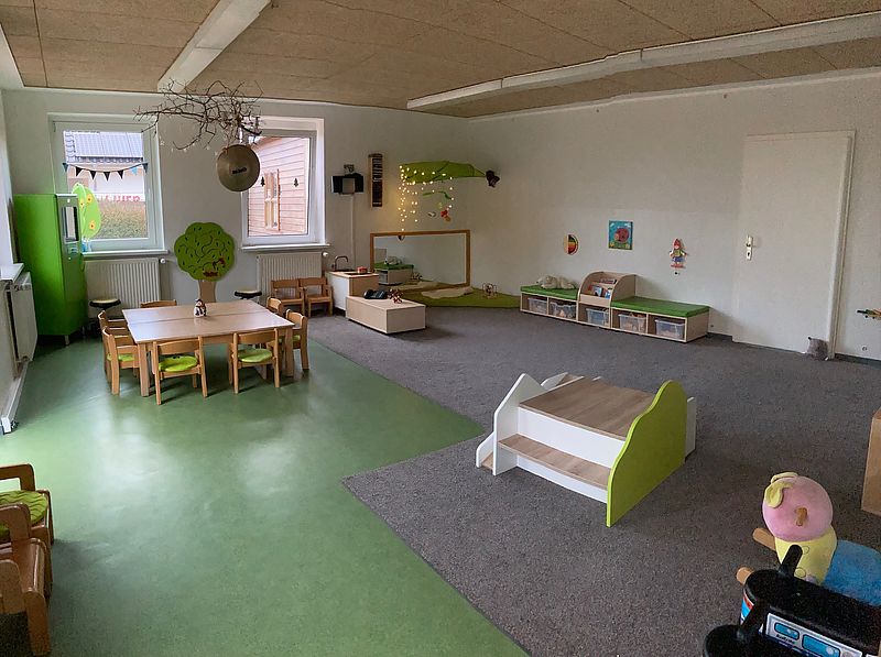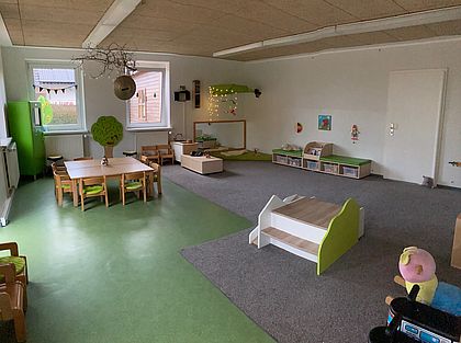 Gruppenraum der "kleinen Lerchen" - hier wird gespielt, gegessen, gesungen, gemalt, ...