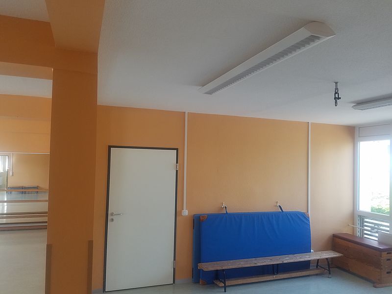 Der Sportraum bietet genügend Platz für kleine Sportgruppen. Er wird gerne von Vereinen für ihre Sportangebote genutzt. Auch Interessierte der gleichen Sportart haben sich hier bereits zum gemeinsamen Sporteln zusammengefunden. Ergänzend zum Sportraum befindet sich auf dem Außengelände noch eine Tischtennisplatte, ein Basketballkorb und ein Fußballplatz.