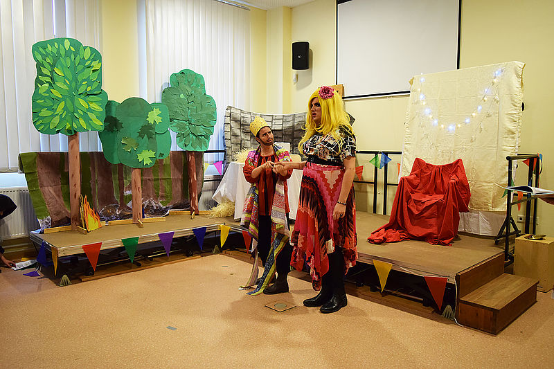 Die Skripte für die verschiedenen Theaterstücke wurden bereits vor den Herbstferien abgegeben. Die Proben sowie die konkrete Ausarbeitung der verschiedenen Märchenstücke erfolgte im Rahmen des Englisch-, Musik- und Kunst-Unterrichts.