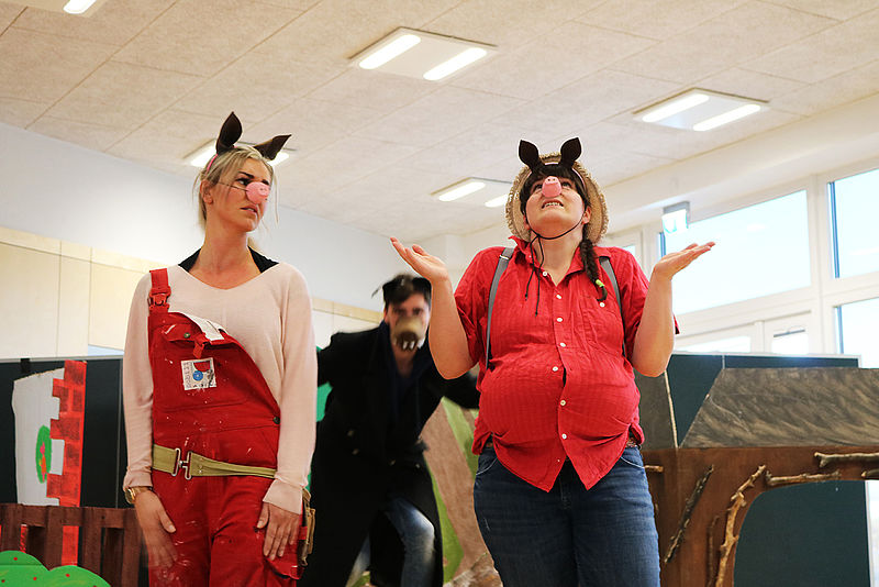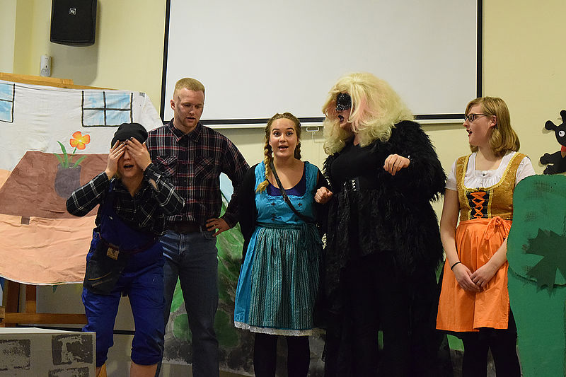 Für unsere beiden abschließenden Erzieherklassen der Fachschule für Pädagogik und Sozialwesen gestaltete sich der Unterricht in den vergangenen zwei Monaten zunehmend turbulent. Denn in dieser Zeit schrieben sie verschiedene Skripte für englische Theaterstücke, die sie am 11. und am 14. November auf einer Bühne einem dankbaren Publikum präsentierten. Alles, ob Kostüme, Geräuscheffekte, Requisiten oder Bühnenbilder, entstand in Eigenregie.