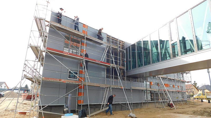 Zum Schuljahr 2017/2018, also Anfang September, soll die Kinder- und Jugendkunstakademie in Kassebohm um einen Erweiterungsbau für eine zweizügige Grundschule mit integriertem Hort für die Klassen 1 bis 4 ergänzt werden. Klar, dass es auf der Baustelle zunehmend mehr zu gucken gibt.