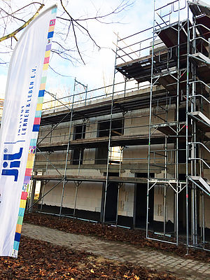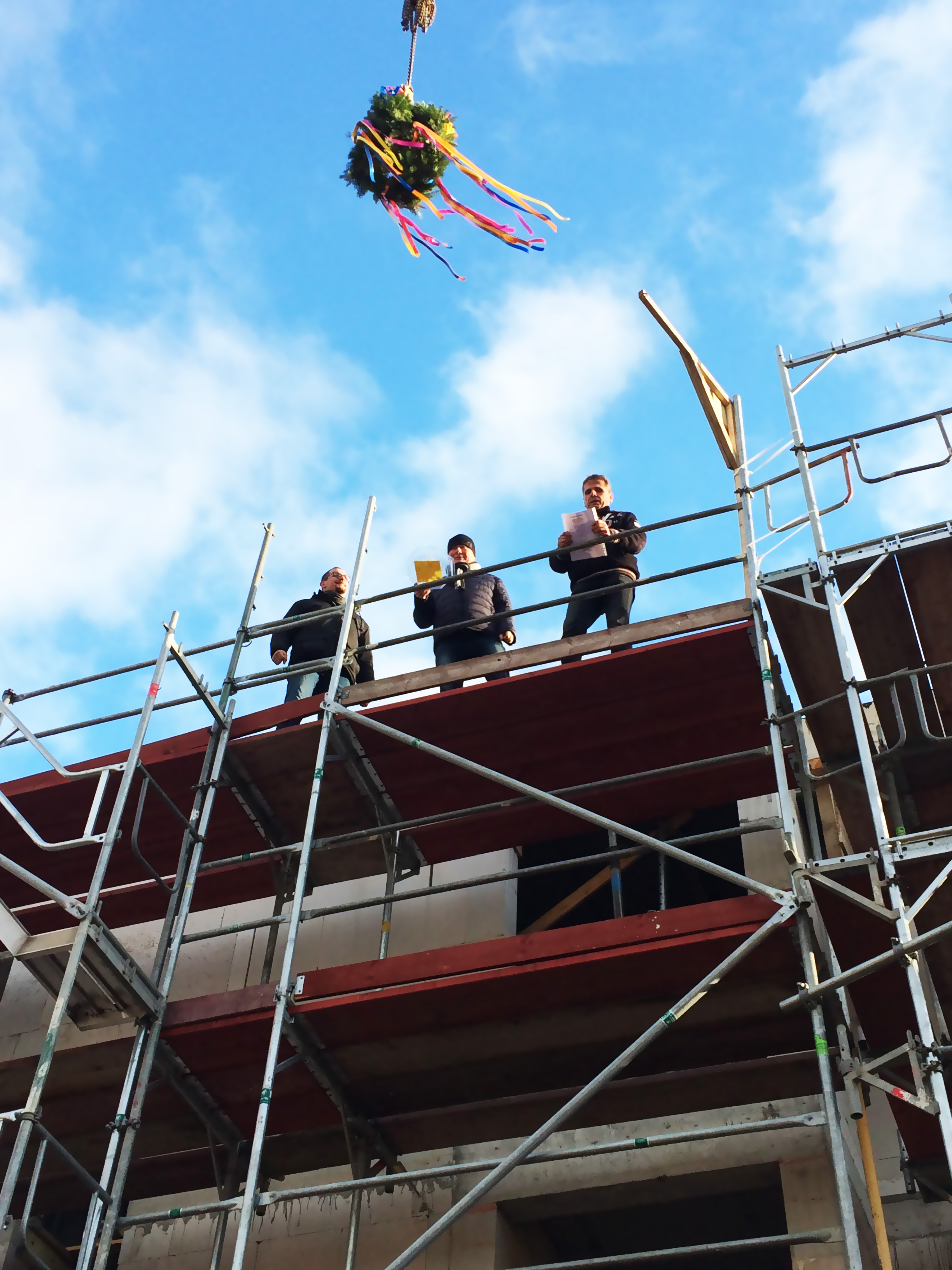 chdem im Mai dieses Jahres der Geschäftsführer des Instituts Lernen und Leben e.V., Sergio Achilles, den ersten Spatenstich vornahm, hängt nun die Richtkrone am Neubau des Hort- und Kitagebäudes in der Makarenkostraße. Der Rohbau ist abgeschlossen, das Dach abgedeckt. Als nächstes beginnen die Dämmungsarbeiten. Zum Beginn des neuen Jahres erhält der Rohbau seine Fenster und auch der Innenausbau wird in den kommenden Wochen und Monaten voranschreiten. „Nachdem wir mit leichter Verzögerung in die Bauphase starteten, befinden wir uns nun wieder absolut im Zeitplan, so dass unsere Kinder und Mitarbeiter das neue Gebäude voraussichtlich Mitte 2019 mit Leben erfüllen können“, resümiert Sergio Achilles.