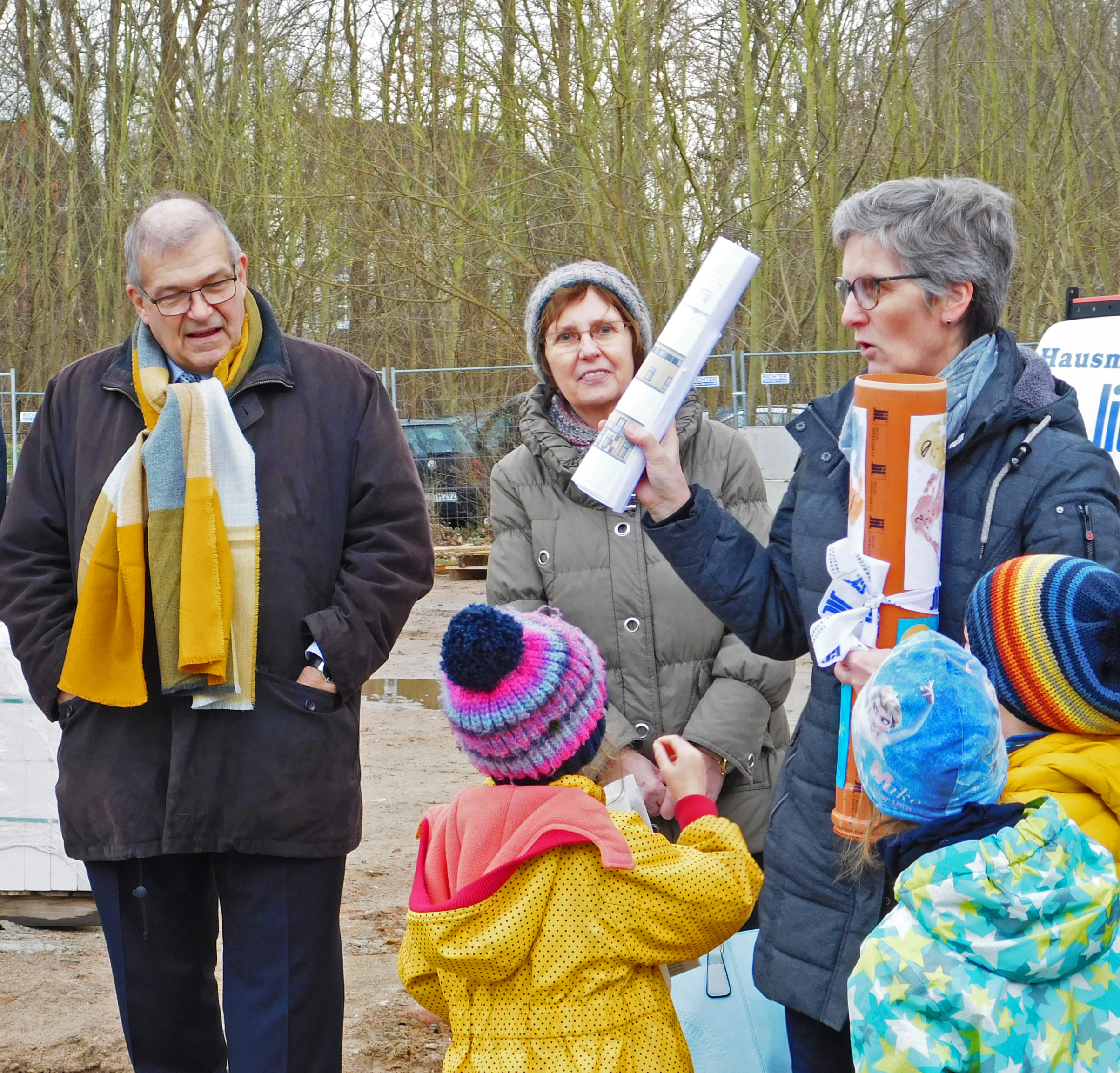 Bentwisch, 25.02.2020. Bereits seit ihrer Eröffnung im Jahr 2009 sind Betreuungsplätze in der Kita „Gewächshaus“ nachgefragt, ganz besonders bei Mitarbeitern des Universitätsklinikums Rostock, denn Öffnungszeiten von 5.30 Uhr bis 20.30 Uhr ermöglichen es, Schichtdienst und Familie leichter miteinander zu vereinbaren. „Seit Anbeginn überstieg die Nachfrage nach Betreuungsplätzen unsere Kapazitäten, weshalb nun, nach längerer Planungsphase, der Grundstein für den Erweiterungsneubau gelegt wird“, berichtet Sergio Achilles, Geschäftsführer des Instituts Lernen und Leben e.V.