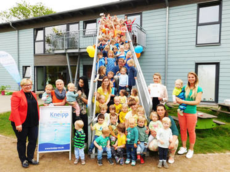 Die Kleinen bejubelten die Auszeichnung gebührend und freuen sich, die gelernte und nun zertifizierte Kneipp-Kultur auch weiterhin in der Kita hochzuhalten. Dabei bestimmen die fünf Elemente der Kneippschen Lehre – nämlich Wasser, Bewegung, Ernährung, Heilpflanzen und Lebensordnung – vorrangig den Kita-Alltag.