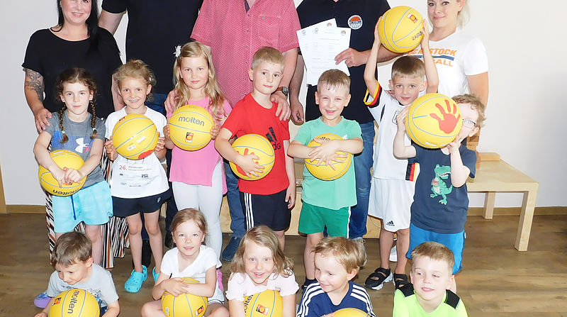 Während die Erwachsenen eine exklusive Kooperation zwischen dem Institut Lernen und Leben e.V. und dem EBC Rostock mittels Vertragsunterzeichnung besiegelten, durften sich die Kleinen der Kita „Fischbank“ gemeinsam mit Trainerin Dani schon mal tüchtig auspowern.