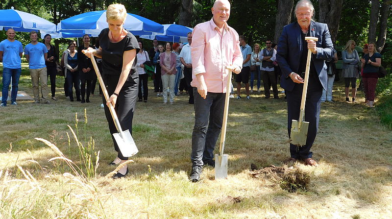 Am Mittwoch, dem 28. Juni, haben das Institut Lernen und Leben e.V. und die Rostocker Heimstiftung gemeinsam den ersten Spatenstich für den Neubau einer Kita in Groß Klein vorgenommen. Namen und Logo hat die Kita auch schon.